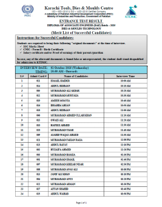 • List of Successful Candidates NVQ CNC Machinist